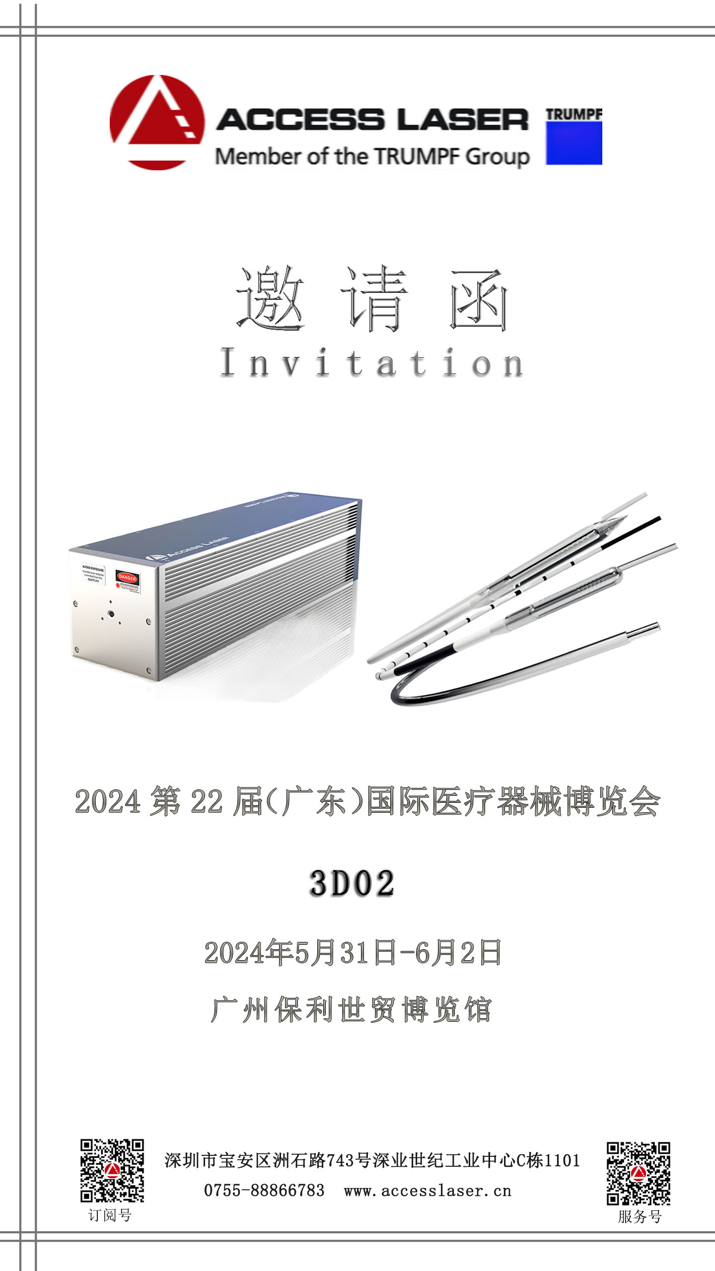 大通激光将展示ACCESS LASER品牌的CO2激光器系列产品中的医疗系列,该系列主要聚焦于牙科、骨科等应用领域。同时,公司同步推出医疗专用CO2光纤产品,其在泌尿科、耳鼻喉科、妇科、外科等微创激光手术中的广泛、高效与精确应用,无疑也将是本次展会的焦点。