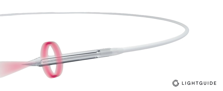 长环形尖端即使在非常大的痔疮静脉结中也能提供4毫米宽的安全径向激光束,达到更完整的腔内